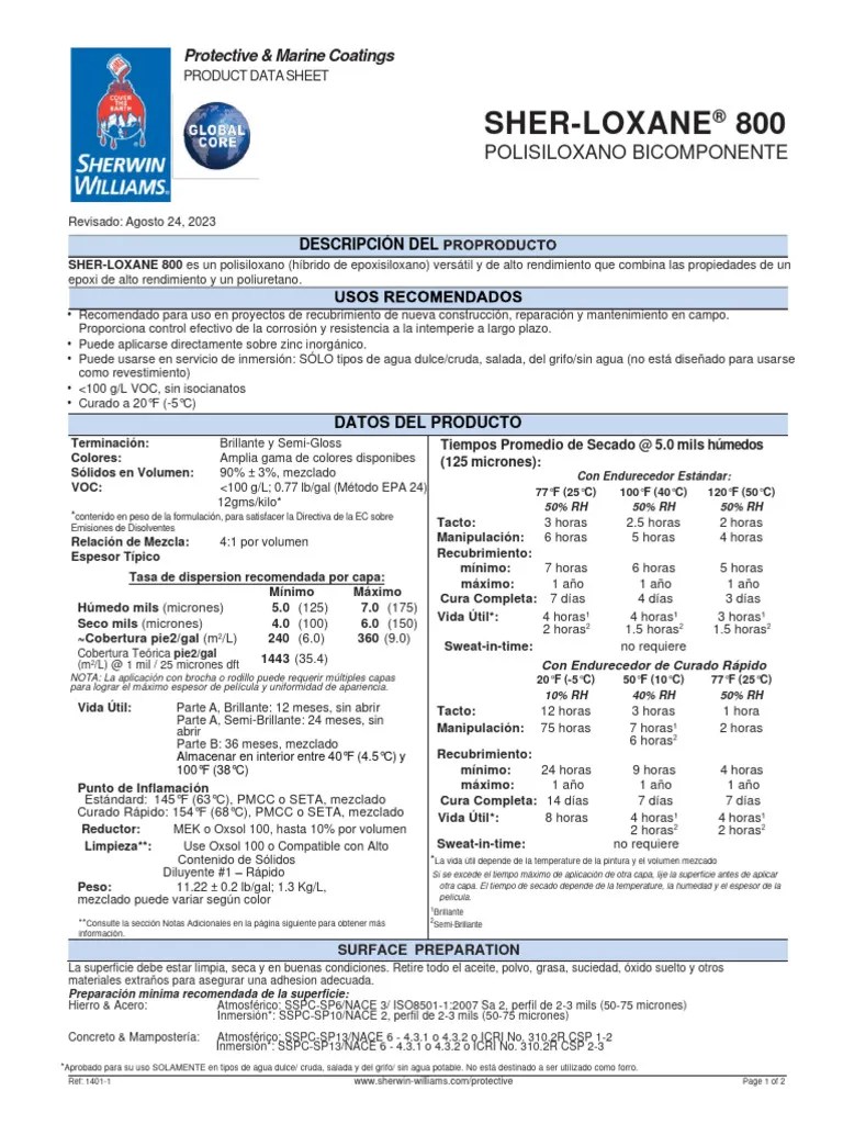 SherLoxane 800 SherwinWilliams Protective & Marine Coatings LATAM Interested in learning more or purchasing.