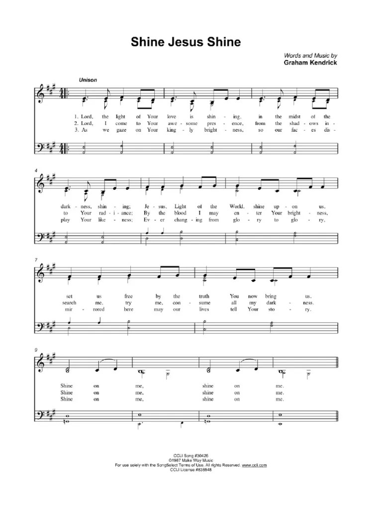 Shine Jesus Shine Piano Sheet - Web purchase the music sheet pdf on this site!mymusicsheet (account required): $0.99 includes 1 print + lifetime access in our free apps. 2 parts • 3 pages • 02:04 • jan 30, 2024 • 16 views • 1 favorite. Crash course bookmark listen now. Share, download and print free sheet music of shine jesus shine graham kendrick for piano, guitar, flute and more with the world's largest community of sheet music creators, composers, performers. Print sheet stave notation numerical pdf file.
