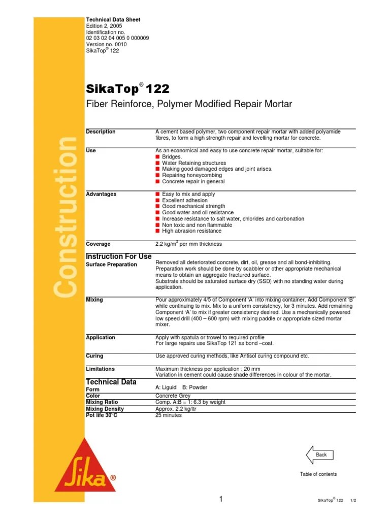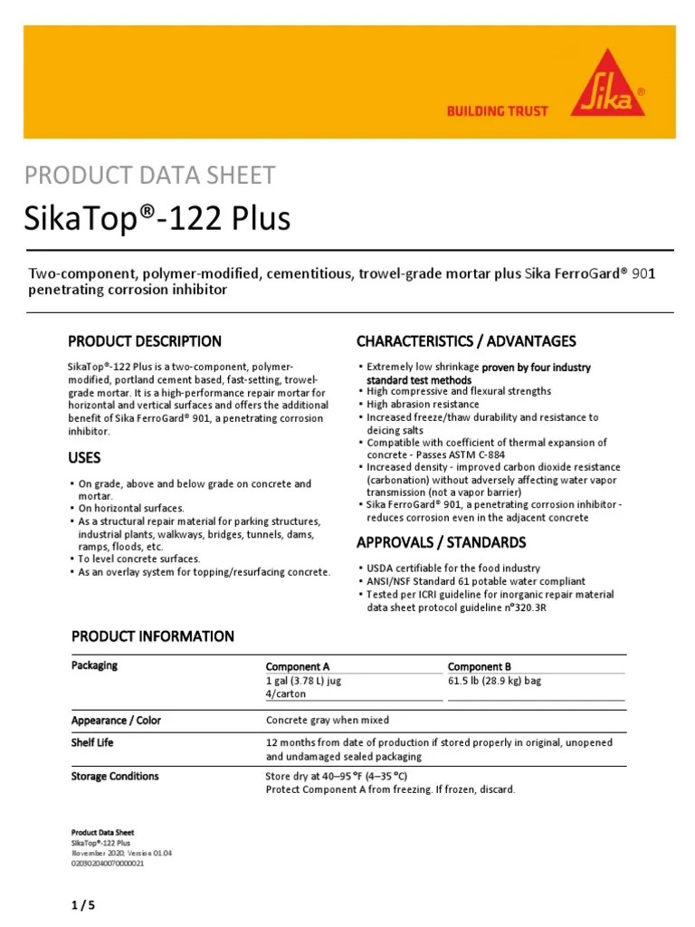 Sikatop 122 Plus Data Sheet - Web manufacturer sika corporation 201 polito ave lyndhurst, nj 07071.