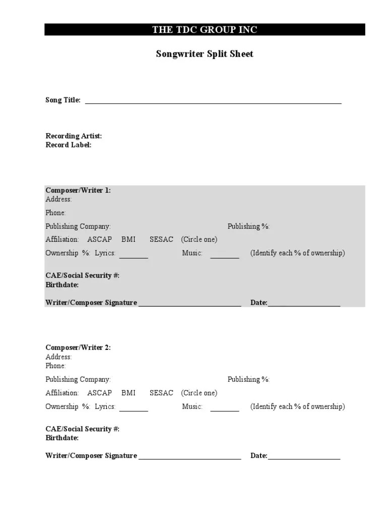 Web using a song split sheet when songwriting with bandmates or outside collaborators defines who did what in. Web what is a split sheet?