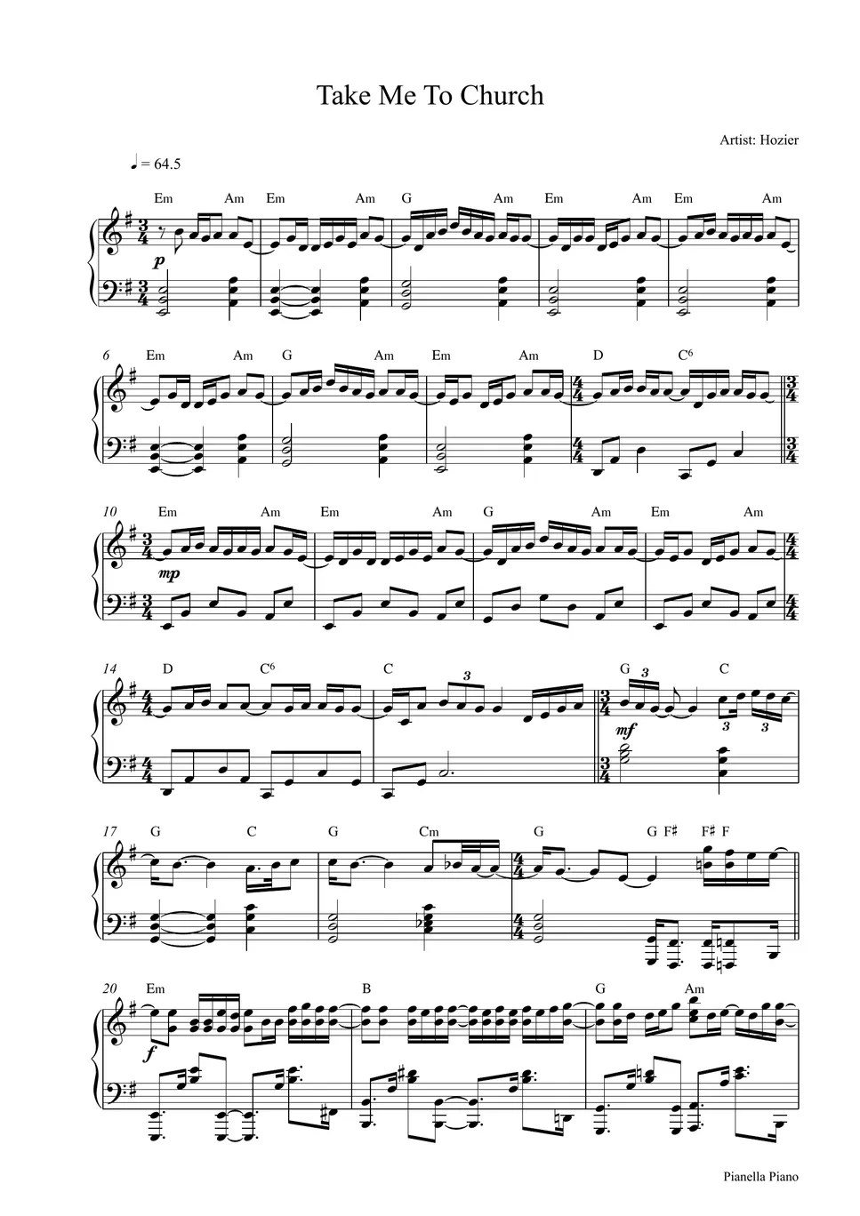 Take Me To Church Piano Sheet - Web a beautiful and successful song, you can learn how to play on the piano by using the free take me to church piano sheets. Web browse our 57 arrangements of take me to church. sheet music is available for piano, voice, guitar and 31 others with 22. 3.25 average based on 77 ratings.
