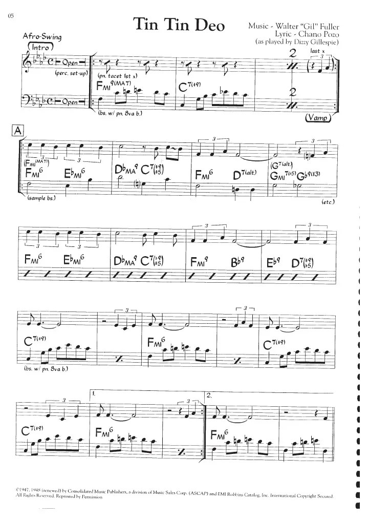Tin Tin Deo Lead Sheet - Web use the interactive viewer. Tin tin deo for voice and piano, intermediate voice sheet music. Although tin tin deo is usually associated with trumpeter diz Web buy tin tin deo sheet music by dizzy gillespie at sheet music plus. Tin tin deo bb author: Licensed to virtual sheet music® by hal leonard® publishing company. This item usually ships within 1 business day. Web buy tin tin deo by dizzy gillepie & gil fuller at jwpepper.com. Web tin tin deo walter gil fuller www.matthiasbergmann.com bb. Find piano sheet music that you like.