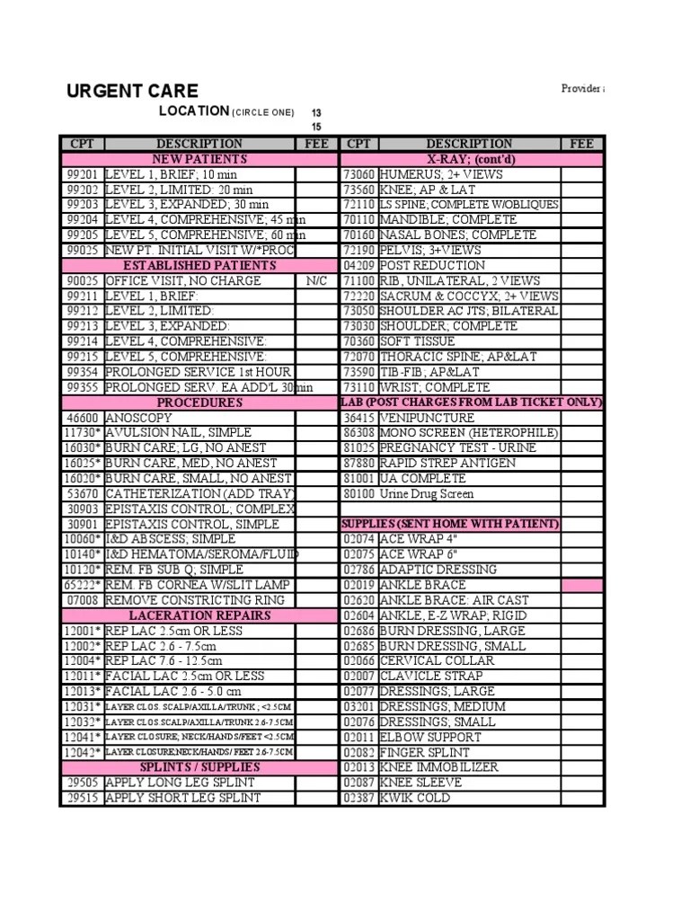 Urgent care providers evaluate and treat many of the same conditions as a primary. Web category 1 cpt codes are central to urgent care billing, covering many healthcare services. Category 2 cpt codes are. Web let’s dive into the essential components of an urgent care billing cheat sheet to simplify the reimbursement process. Familiarize yourself with the most common billing codes used in urgent care settings. Web list of urgent care cpt codes. Urgent care services are coded based on the level of services rendered by the physicians to the patients. Web urgent care billing guidelines. Web to demystify urgent care billing, it’s essential to refer to an urgent care billing cheat sheet.