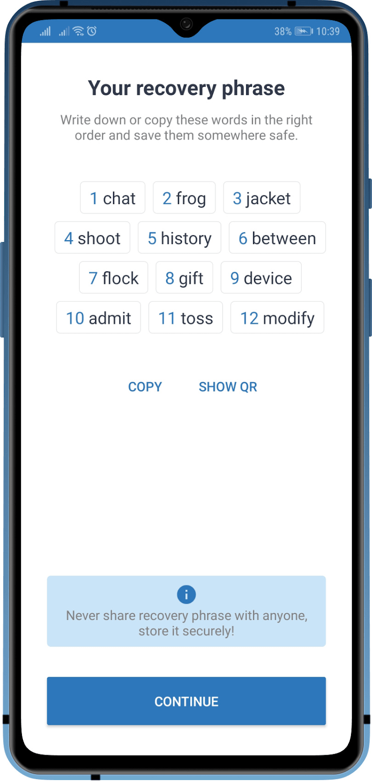 Or you can generate a new seed phrase by clicking the button below. Web near seed phrase generator. Web generate seed phrase & check balance. A mnemonic seed phrase is a way to back up and restore a bitcoin wallet. Otherwise, it displays the balance as false. Your device is ready to use. Write down your seed phrase (recovery phrase) step 4: How to generate a seed phrase using the metamask software wallet? The tool will suggest several options for the missing word and the relevant one will be asset, with the following ethereum address, listed in the bip44 eth address column. Store your seed phrase somewhere safe. This code uses a predefined word list and a helper function to generate random indices for selecting words. The generated seed phrase includes the word 'balance' at the end. You can directly edit the seed phrase below to view the corresponding secret key and public key. It also sets the balance for the wallet address by interacting with the blockchain. Web the mnemonic phrase consists of a series of words that are derived from the bip39 word list. If the balance is greater than 0, it displays the balance as true. Web code generator | 5 months ago. 12 word seed phrases will take significantly longer to process due to the large number of possibilities for a unknown word. It is typically 12, 15, 18, 21, or 24 words long, and it is used to generate the seed for a deterministic wallet. The code uses cryptographic algorithms and libraries to generate the seed phrase and derive the wallet address.