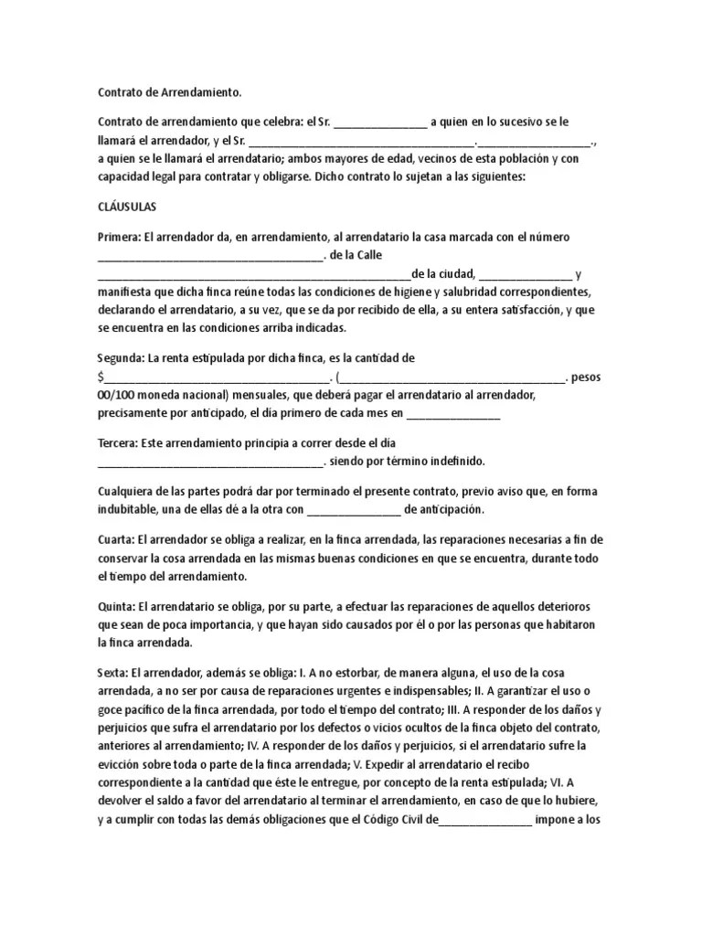 Web encuentra un machote descargable en pdf y editable (word) con las partes principales de un contrato de arrendamiento, como información básica, declaraciones y cláusulas. Conoce también los tipos de contratos de arrendamiento y las leyes que los regulan. Este modelo incluye las cláusulas fundamentales que todo contrato de arrendamiento debe contener, lo que te. Web para facilitar el proceso de redacción de un contrato de arrendamiento, ponemos a tu disposición un modelo de contrato de arrendamiento en formato word, el cual puedes descargar de forma gratuita y personalizar según tus necesidades. Descárgalo ahora y asegura una relación de arriendo clara y segura para ambas partes. Web con este sencillo modelo de contrato de arrendamiento en word, podrás crear un documento formal y completo de acuerdo a tus necesidades específicas.