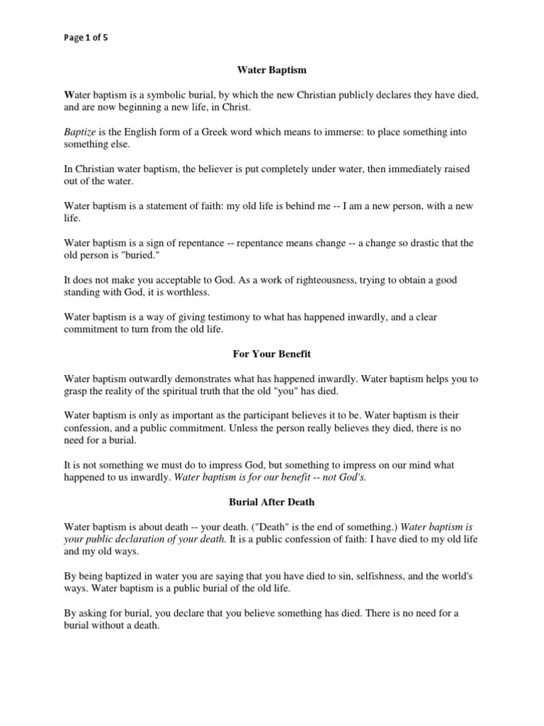 In christianity, baptism is the sacrament of initiation in which water is applied to the head of the initiate, or the initiate is. 907 ( baptízō) implies submersion (immersion), in contrast to 472 /antéxomai (sprinkle). It gives every verse where the word 'baptizo' appears in the new testament. I dip, submerge, but specifically of ceremonial dipping; From a derivative of ; Used only (in the new testament) of ceremonial ablution, especially (technically) of the ordinance of christian baptism:—baptist, baptize, wash. Hence, baptize, to immerse (literally, dip under ). I dip, submerge, baptize definition: The word baptize or baptized is an anglicized version of the greek baptizo, and is transliterated instead of being translated. 1) to dip repeatedly, to immerse, to submerge (of vessels sunk) 2) to cleanse by dipping or submerging, to wash, to make clean with water, to wash one' s self, bathe. The practice of immersion in water existed for centuries before it began to be altered as early as the 4th century ad, and being more commonly replaced by sprinkling in the 7th century ad. From a derivative of g911. Learn the audio pronunciation, word origin and usage in the bible, plus scripture verse references of baptizo. Web bible & archaeology. < previous 1 2 next > Web this is a greek word study about the meaning of the greek verb βαπτίζω, 'baptizo' meaning 'baptize' strong's 907. I dip, submerge, but specifically of ceremonial dipping; The greek word baptizein (βαπτίζω), meaning to dip or plunge, originally referred to anything from dipping a ladle into a bowl of wine to sinking ships to bathing. This word is used 80 times: