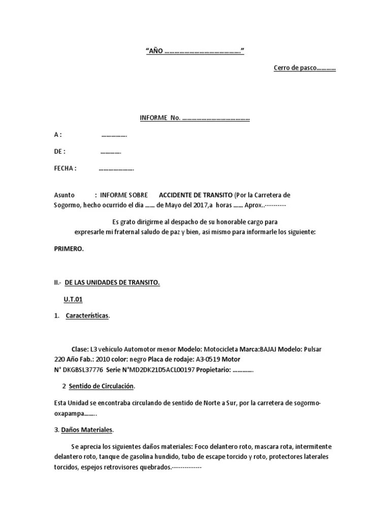 Usa esta plantilla para incluir la información relevante sobre el accidente vehicular y generar un informe de accidente automáticamente. Web plantilla de formulario de informe de accidentes de tráfico. Web formato de informe de accidente vehicular. Web al redactar un informe de accidente de tránsito, es fundamental seguir un formato claro y detallado para documentar adecuadamente los hechos. Permite informar fallas mecánicas, infracciones de tránsito, especies de faunas involucradas en accidente, etc. Web un informe que reúne detalles de causas de accidente vehicular e incidentes en carretera. [dirección o nombre de la vía] 4. La primera sección de la plantilla consiste en una guía de cómo proceder después de un accidente. [detallar cómo ocurrió el accidente, incluyendo las condiciones de la vía, el clima y los vehículos involucrados] 5. En primer lugar, es importante incluir la información básica como la fecha, hora y lugar del accidente, así como los nombres y datos de contacto de los involucrados. Web a continuación, detallo los hechos y circunstancias del accidente: Un formulario de informe de accidentes de tráfico en línea ofrece una mejor alternativa para registrar cualquier accidente en la carretera. Utilice este informe de accidente de vehículos para describir todos los detalles necesarios en un accidente | descarga gratuita y también en pdf.