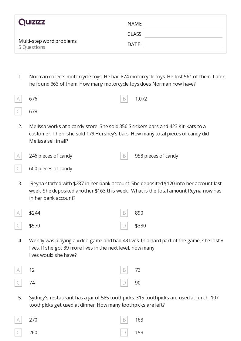 Multi-Step Word Problems Grade 3 - Each problem can be solved without knowledge of multiplication or division. Represent these problems using equations with a letter standing for the unknown quantity. They'll use the chart provided to solve the addition and subtraction word problems. Web multiple step, basic #1 free. Problems contain basic numbers of 20 or less. Award winning educational materials designed to help kids succeed. Splashlearn offers educational fun activities aligned with common core standards.