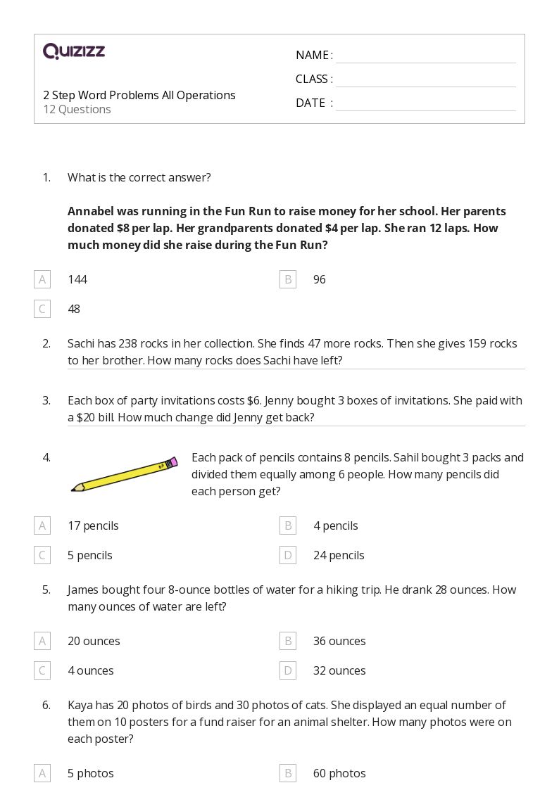 You may increase the difficulty by selecting extra unnecessary information. Web mixed operations word problems. You may select the numbers to be represented with digits or in words. These workshes mix addition, subtraction, multiplication and division word problems. Add / subtract / multiply / divide. Web 4 operations word problems. Web one step equations word problems worksheets. These grade 5 math word problems involve the 4 basic operations: This word problems worksheet will produce ten problems per worksheet. Operations used in each word problem. These worksheets will test a students ability to choose the correct operation based on the story problem text. This one step word problems worksheet will produce ten problems per worksheet. Some questions will have more than one step. Addition, subtraction, multiplication and division. Use multiplication or division operations to solve the obtained equation. This word problems worksheet will produce addition, multiplication, subtraction and division problems with 1 or 2 digit numbers.