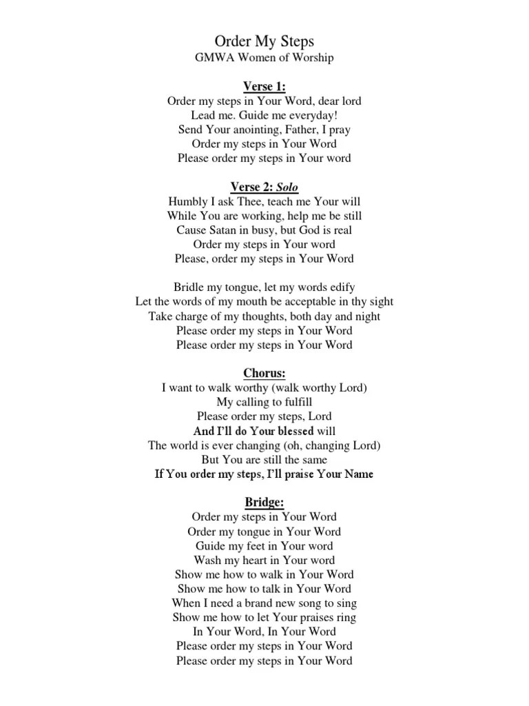 Order My Steps In Your Word Lyrics - Order my steps in your word dear lord. Order my steps in your word. Lead me, guide me everyday. Web find the lyrics of the song order my steps by brooklyn tabernacle choir, a christian gospel song written by steven howse, charles scruggs, anthony henderson and glenn burleigh. Web find the lyrics of the gospel song order my steps by the brooklyn tabernacle choir, from the album favorite song of all. 34k views 6 years ago. The song asks god to order the steps, tongue, feet and heart in his word. Please, order my steps in your word. Order my steps in your word dear lord. Order my steps by gmwa women of worship was purchased and downloaded from itunes and the creator and.