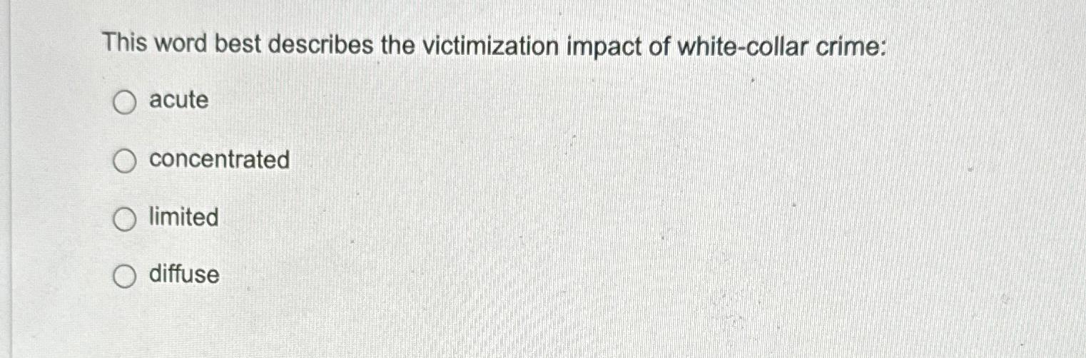 This Word Best Describes The Victimization Impact Of White-Collar Crime: - This is known to be. » know the types of costs. Web reasons for this include all of the following except: An especially alarming characteristic of white.